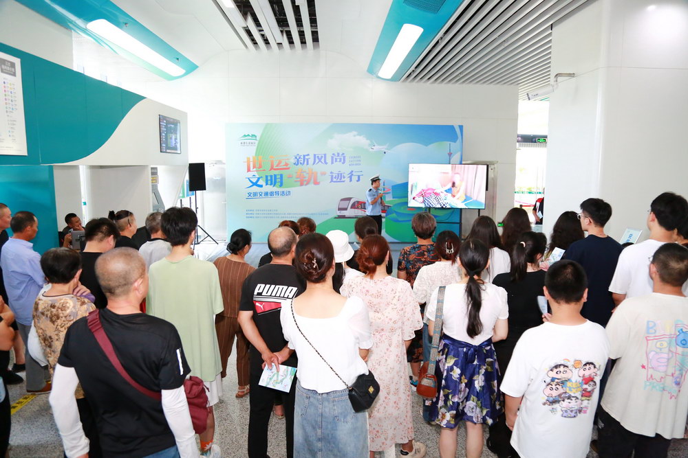 成都“迎世运赛会 展文明形象”文明实践主题活动走进地铁站。成都市文明办供图