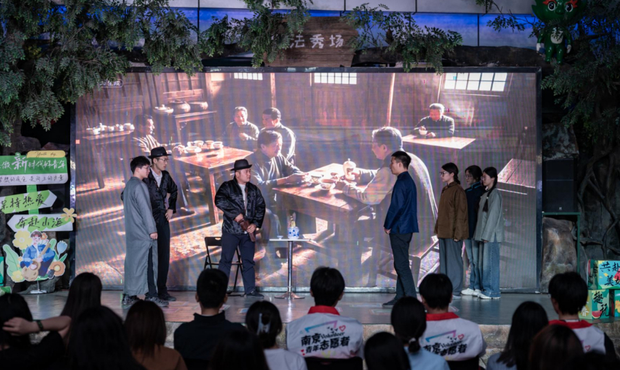 街道青年干部排演原创话剧《我的父亲仇天泽》。图片来源:江北新区葛塘街道